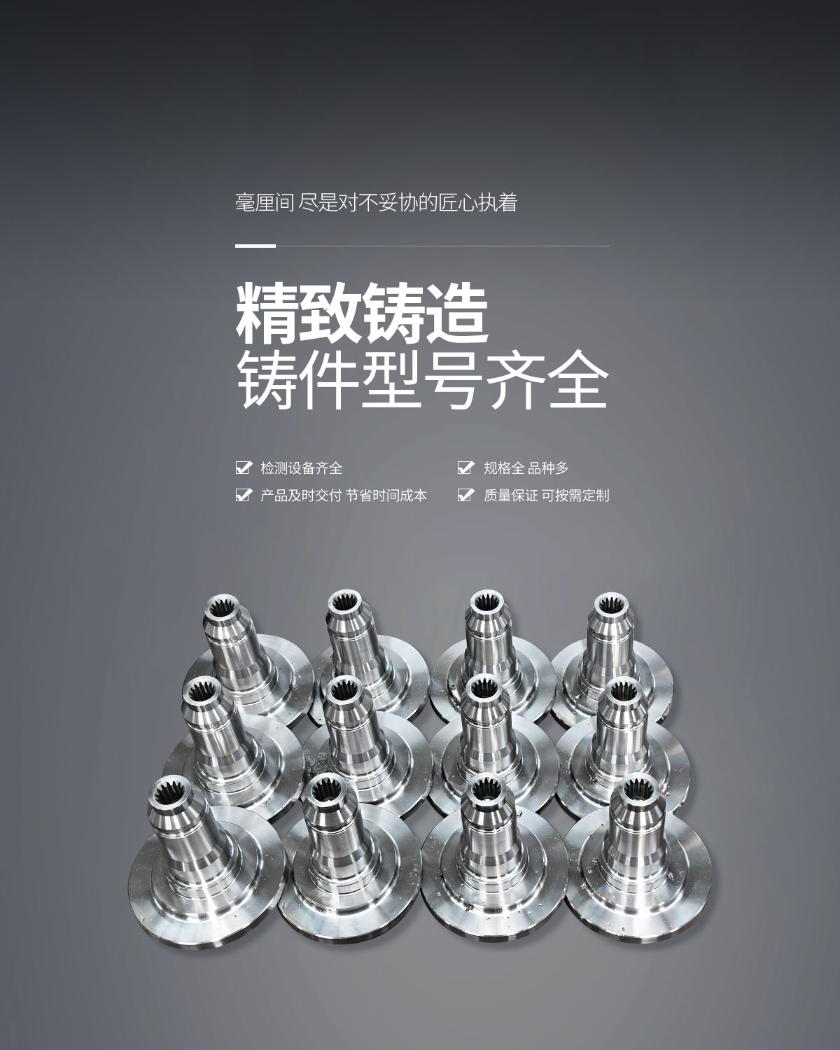 我公司配備全通道光譜分析儀、碳硫分析儀、金屬金相分析儀、洛氏硬度計、溫度檢測儀等檢測化驗設備和30多臺機加工設備,確保了造型、澆鑄、加工、熱處理、檢測各個環節的質量。我們采用現代化的質量管理和嚴格的企業管理制度,率先通過了ISO9001質量體系認證和TS16949管理體系認證,確保了產品質量在同行業中的地位。